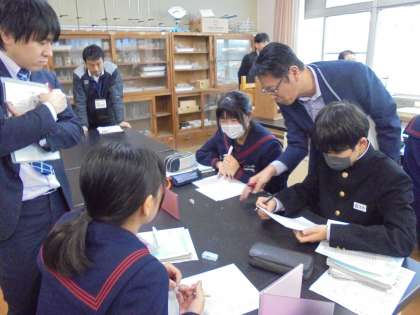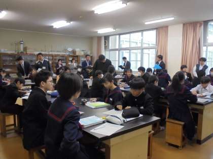 6限は1年4組で理科の公開授業が行われました。いつもより先生方の数が多く、少し緊張した雰囲気で授業がスタートしました。