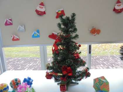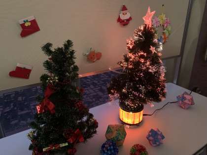 下校時刻頃には、クリスマスツリーに電飾が灯り、キラキラしています。