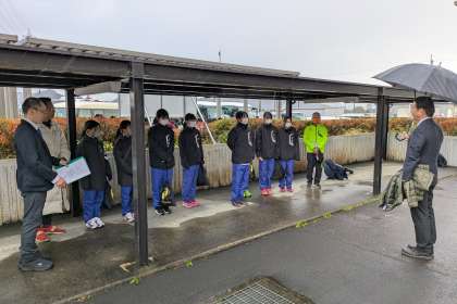 その後、富山県教育委員会、富山県中学校体育連盟の方より激励の言葉をいただきました。富山県の代表としての自覚をもち、自分の力を出し切ろうという士気が高まっていました。