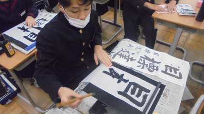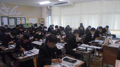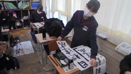 本日は書き初め練習を行いました。「目標達成」を丁寧に書き上げており、自信を持って完成している様子が多く見られました。1月の書き初め大会が楽しみです。