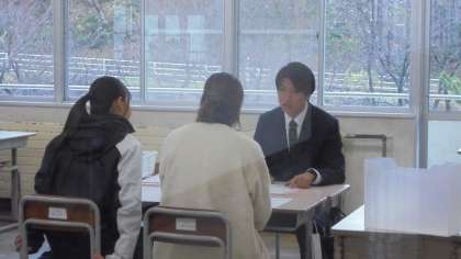 三者懇談会の様子です。生徒待機教室は14H横学習室2になります。