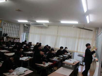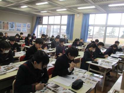 写真下:23H 英語 比較級の問題を集中して解いています。