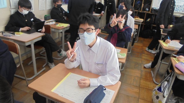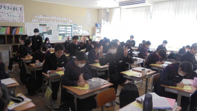 卒業までに身につけておきたいことをテーマに作文を記入しています。卒業までに学校に来る日数も残り38日となりました。忙しい日々が続きますが、クラスメイトの声かけが励みになっているようです。