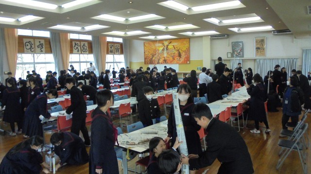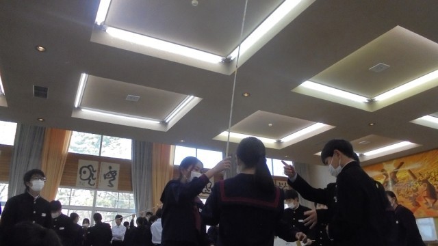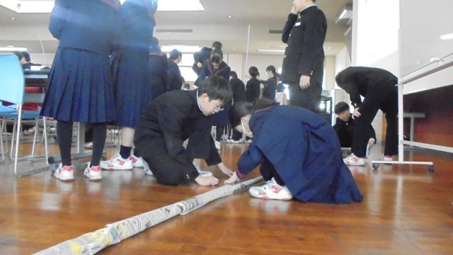 1学年では、5限に学年レクリエーションとして、新聞タワーを行いました。