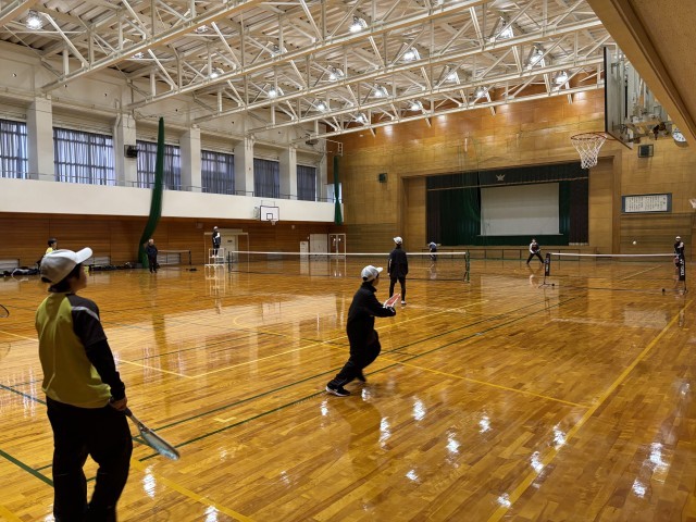 本日は本校テニスコートと大沢野小学校体育館に別れて練習しています。