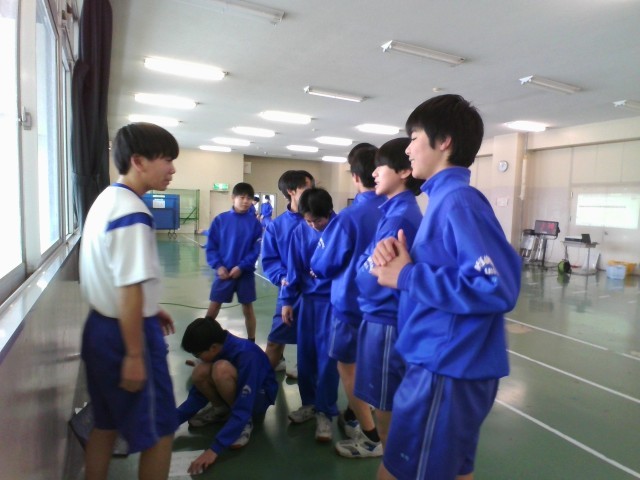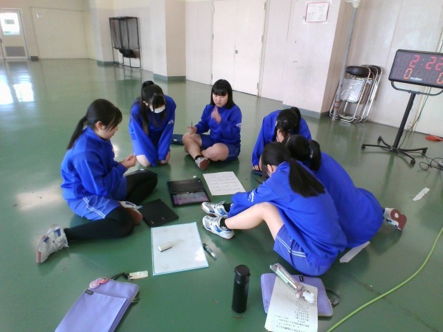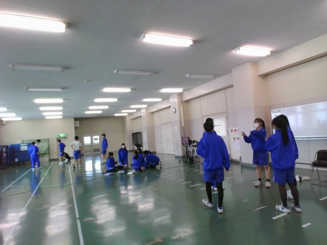 体育の授業では、ダンスの授業をしています。グループごとにダンスを考えています。
