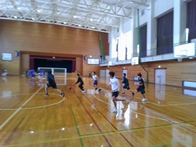 男子バスケ部はオールコートを使って3対3の練習をしています。