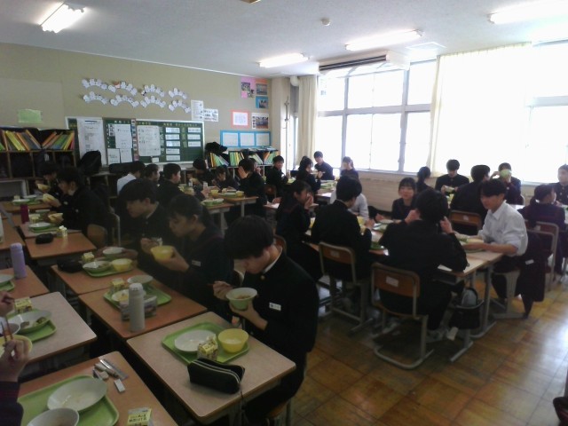 3年生は他の学年より1日早く学年末考査が終わり、給食では少しホッと様子も見受けられます。県立一般入試まであともう少し!自分の力を出し切れるよう、たくさん食べてたくさん勉強して、十分な睡眠をとりましょう!