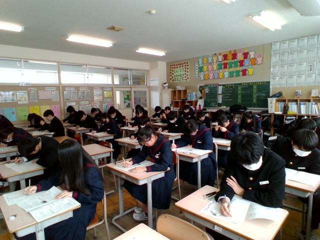 3日続いたテストですが、生徒たちは疲れ感じさせないほど、真剣に問題用紙と向き合っています。