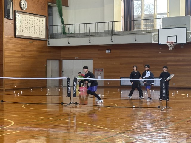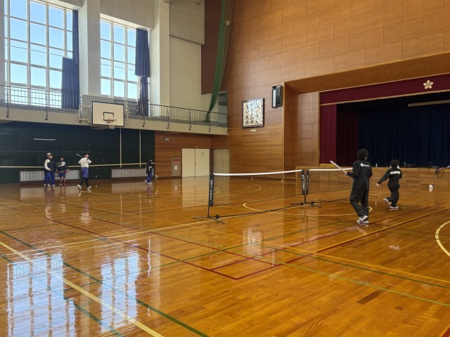 今日は男女共に体育館でボールを使った練習をしています。テニスコートの雪解けが待ち遠しいです。
