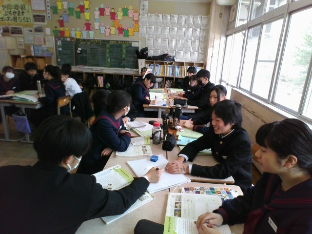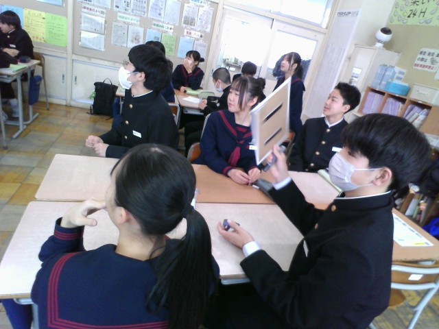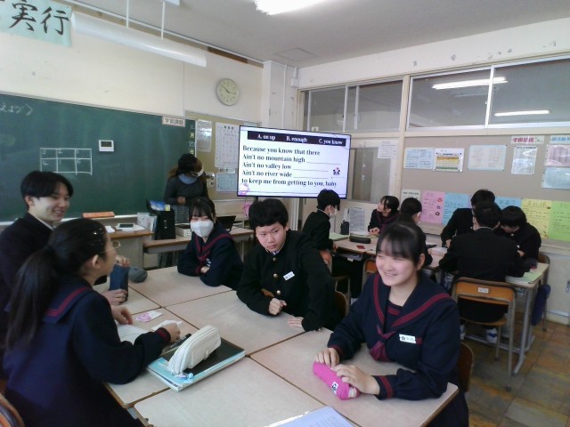 今日はALTの先生と洋楽クイズや教科書内容のクイズをしました。班で話し合って考えていました。