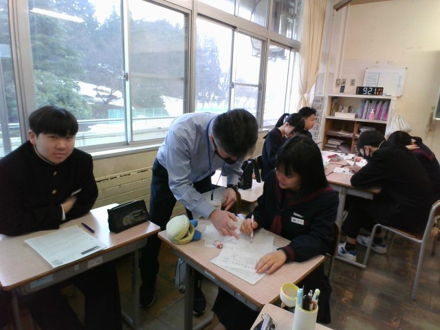 数学の授業では確率の学習をしています。班で教え合ったり、先生に質問したりして課題を解決しようとしていました。