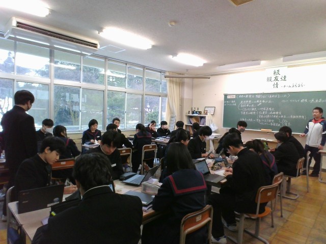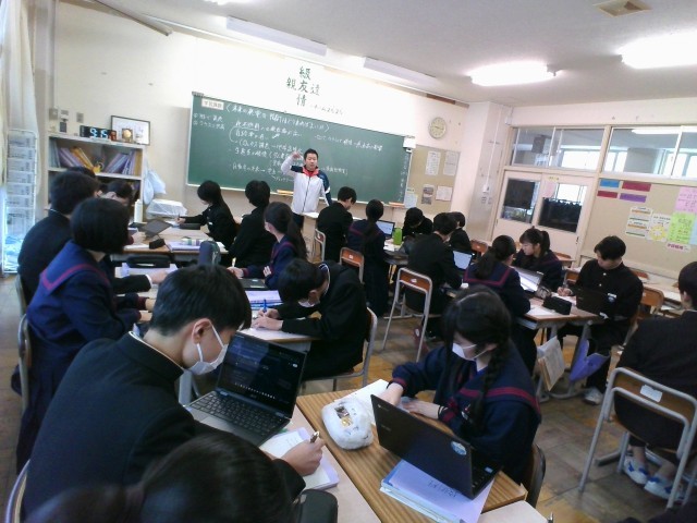 技術の授業では、未来の発電の技術について考えていました。クロームブックを使ったり、班で話し合ったりしていました。