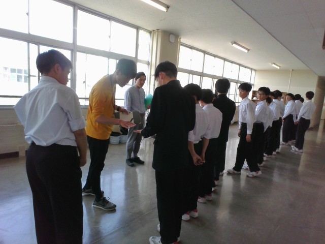 2学年は、中学生らしい爽やかな身だしなみができているか、確認をしました。7月には「社会に学ぶ『14歳の挑戦』」があります。自分自身で、髪型や服装等を整えられるようになってきています。