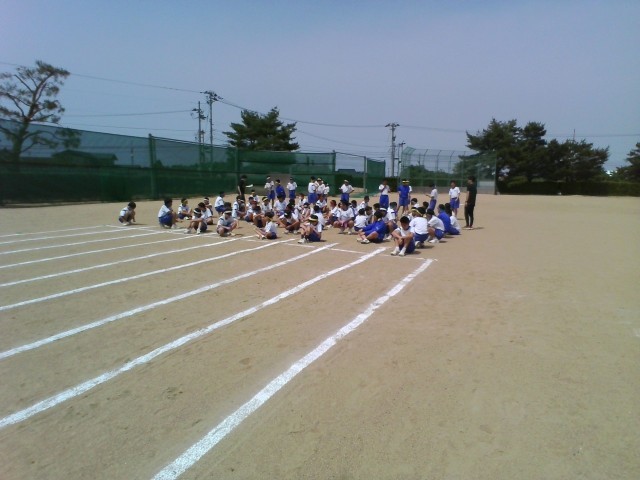 本日はまず最初に体育大会の100m走の走順の確認と整列を行いました。リーダー中心に声掛けを行い、素早く整列できていました。