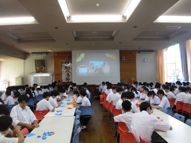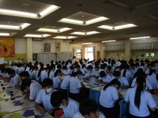 志望校の合格や平和を祈って、折り鶴を作りました。みんなで協力する姿が見られました。