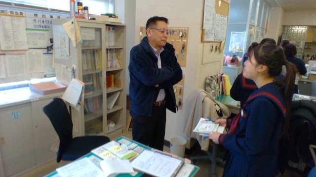 朝の風景です。3学年(もうすぐ卒業)が、職員室に来て、先生方に挨拶に来てくれました。感謝状の束のプレゼントも一人一人の先生に渡しました。来る3月12日(木)は卒業式です。