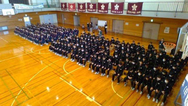 1・2年生に向けて、生徒会執行部からR8年度の体育大会についての集会が開かれました。これからのスケジュールや団リーダーの選考に関するアナウンスがありました。自分がどんな立場で体育大会を盛り上げられるかをよく考え、行動に移していきましょう。