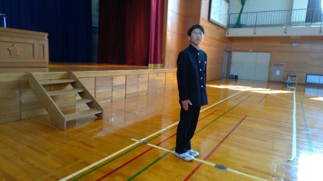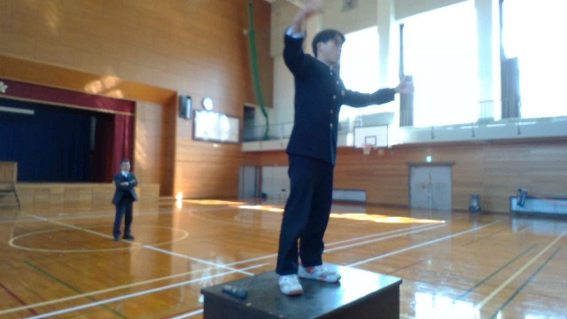 午後の体育館の様子です。1・2年生が、卒業式に向けて動作や歌の練習を行っています。国歌斉唱、答辞等について確認できました。