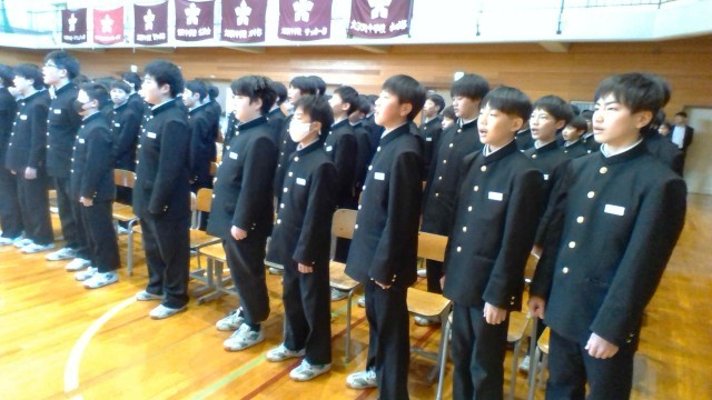 体育館で「卒業式」に向けての歌練習が続いています。歌声が大変に美しいです。1・2年生全員が真剣に歌っています。