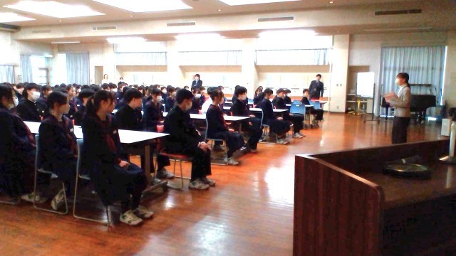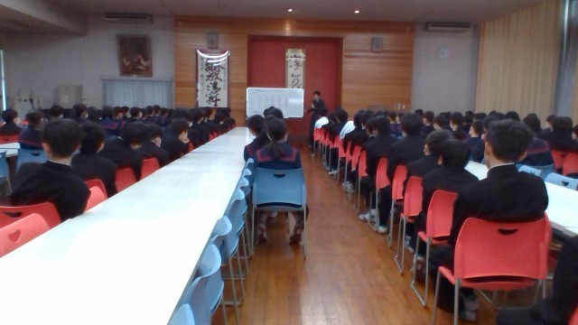 本日は学年集会を行い、学習や冬休みについて2学期の振り返りも交えながら各先生からお話をいただきました。