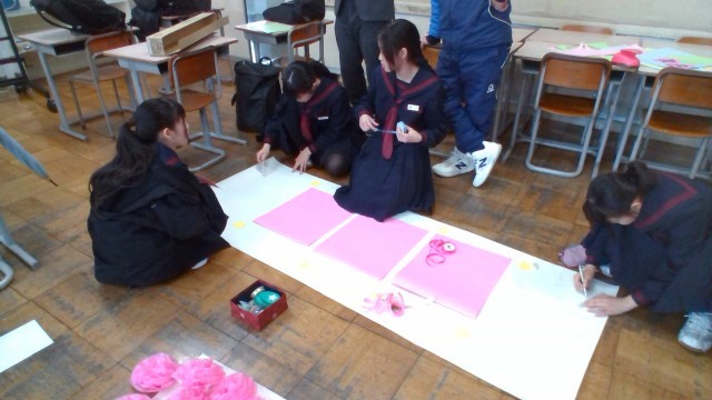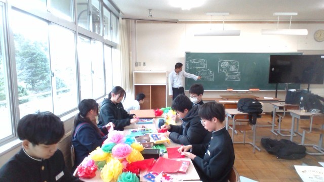 3月4日(水) 1学年 卒業式の飾りつけ作成