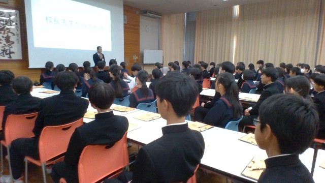 2学年は、「テキスト学習」についての学年集会をしました。参考書付き問題集を継続的に行って、学力向上を図ります。あと4か月で3学年に進級です。中学校卒業後のことを考える時期が来ています。