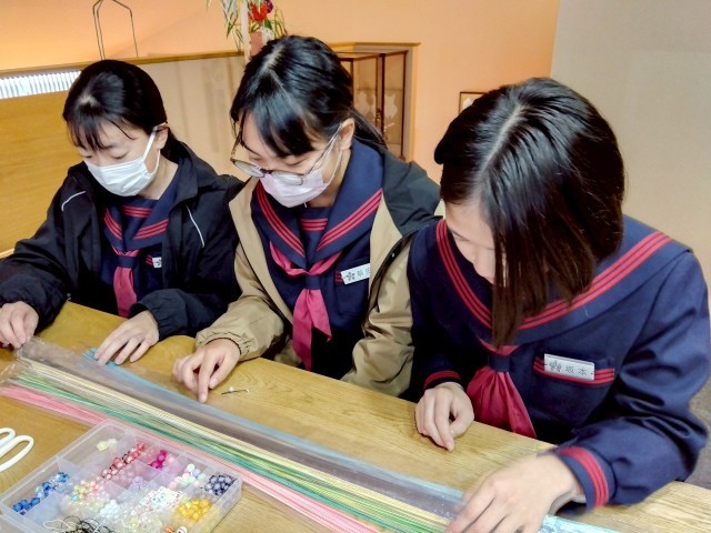 水引作りでは、丁寧なご指導を真剣に聞いてStrapを作成しています。