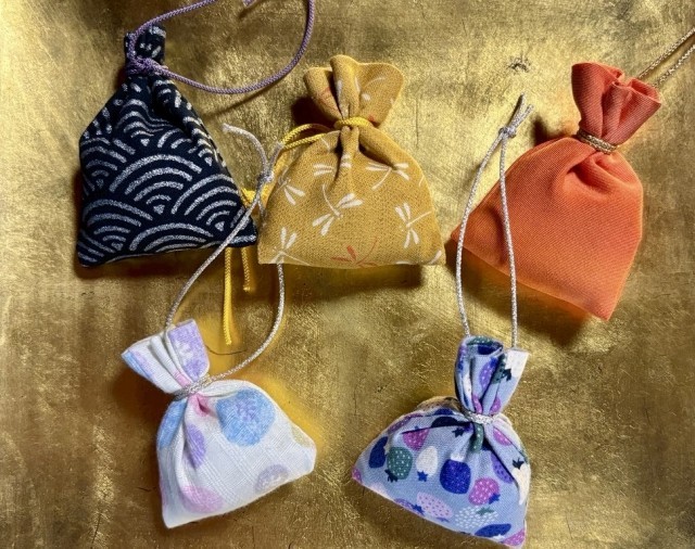 香道体験では、香匂い袋作りを行っています。自分の好みに合わせた物を作成しました。