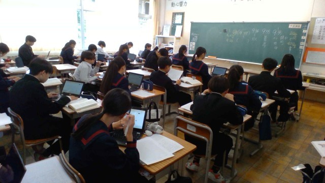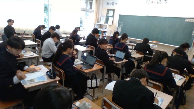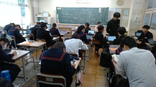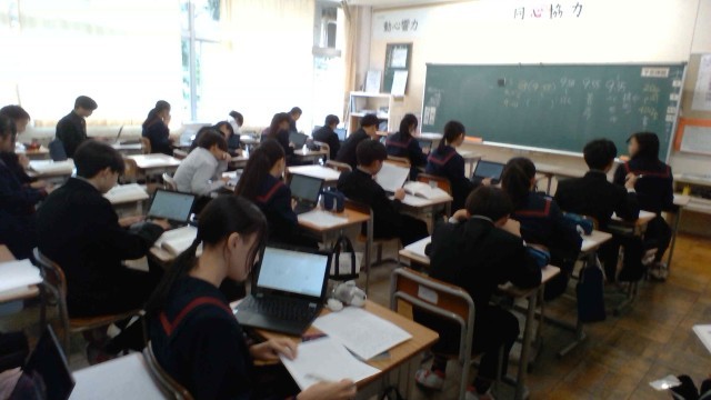 2学年国語科では、「平家物語」を学んでいます。今日は、登場人物等についての課題作文に取り組みました。とても集中しています。来週は、期末考査も実施されます。