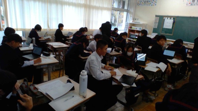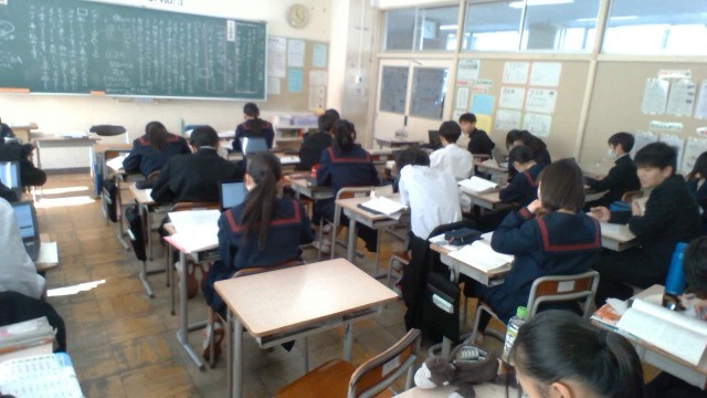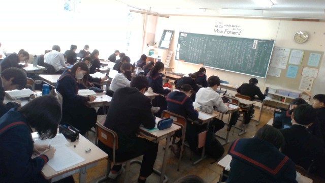 2学期末考査最終日3日目です。本日は、音楽、英語、数学です。2学年は今日も真剣に問題に向かっています。