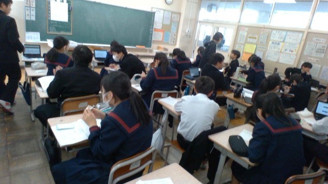 2学年、2学期末考査1日目です。本日は、保健体育、理科、国語です。とても集中して問題に向かっています。