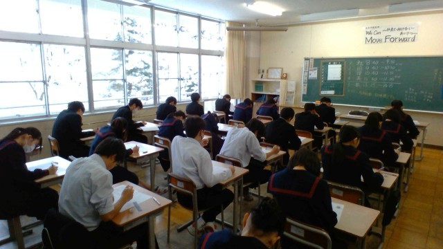 2学年は冬休みテストを実施しています。今日1日で5教科すべてを行います。学習の成果を発揮してくれることを期待しています。