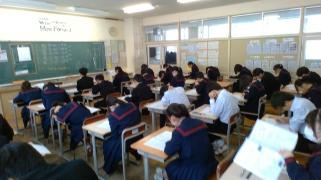 2学期末考査最終日3日目です。本日は、音楽、英語、数学です。2学年は今日も真剣に問題に向かっています。