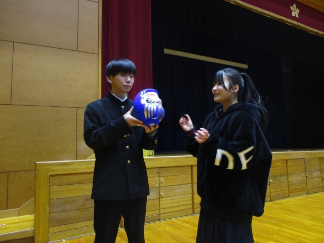 3学年の進路の実現を願って、ダルマに目入れを行いました。新年の決意を皆で実現させましょう!