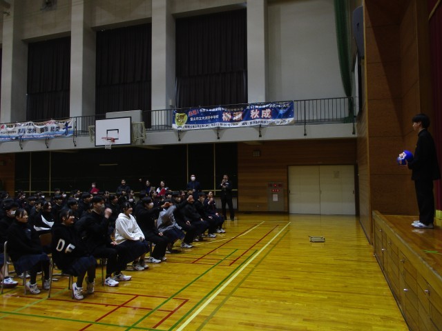 2学期最後の学年集会を行いました。学年の先生から冬休みの過ごし方等を話していただきました。みなさんよい冬休みを過ごしてくださいね!