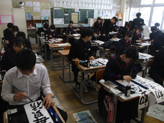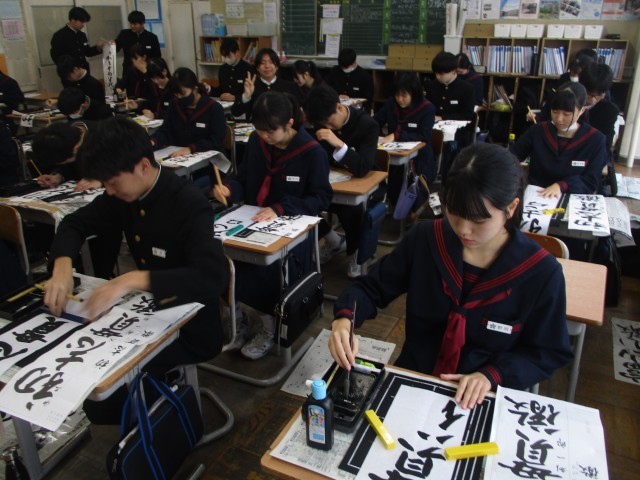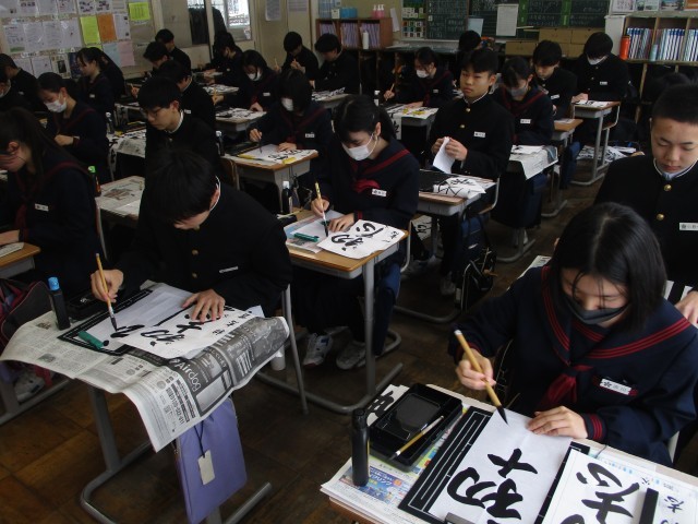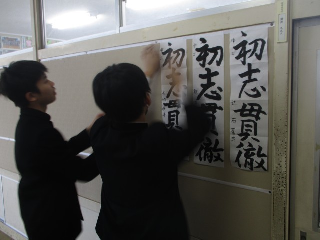 始業式後に書初め大会を行いました。新年の決意を「初志貫徹」できる年にしましょう。