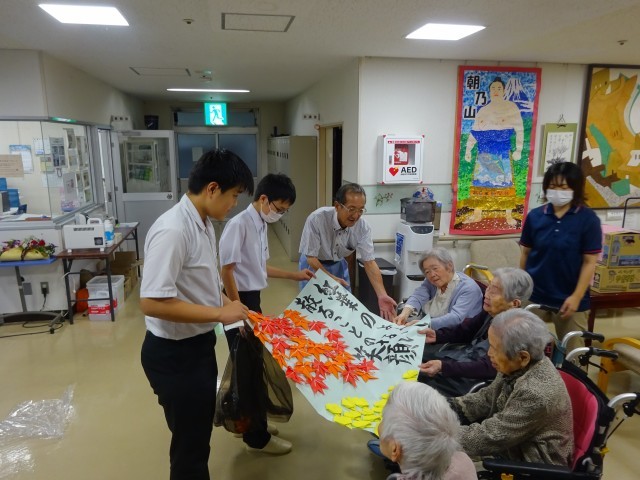 心を込めて制作してくれたボランティア実践部員のみなさん、快く受け取ってくださった特別養護老人ホーム太陽苑のみなさん、ありがとうございました。 -
