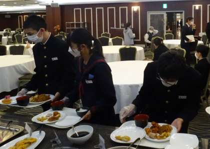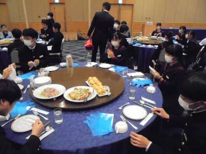 各班京都の名所を巡り終え、昼食会場に集合しました。