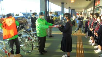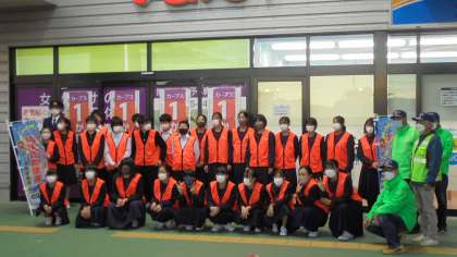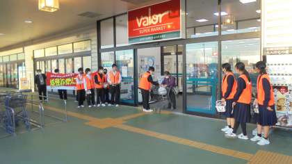 地域ボランティア「地域に貢献し隊」として、特殊詐欺防止キャンペーンに、生徒会執行部とボランティア実践部に加えて、2年生から募集した生徒が29名参加しました。