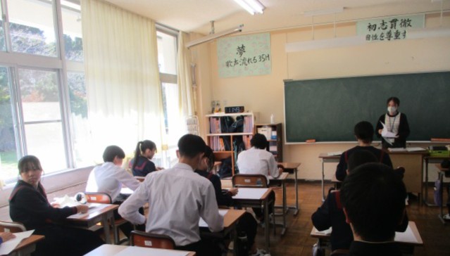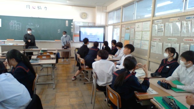 本校 小幡幸治 校長の教え子でもある木地さんには、中学生時代のお話や様々な職に就かれた経歴などお話しいただきました。