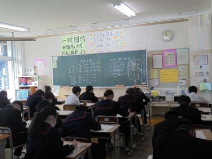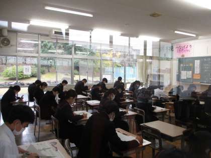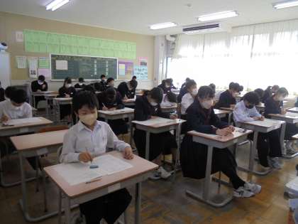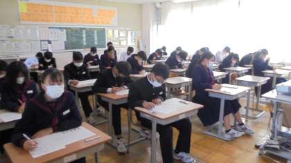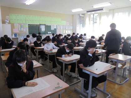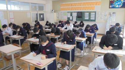 2年生は1限目音楽、2限目美術、3限目社会のテストが行われました。真剣に取り組む姿が見られました。明日は3日目、最終日です。全力を尽くして頑張りましょう!