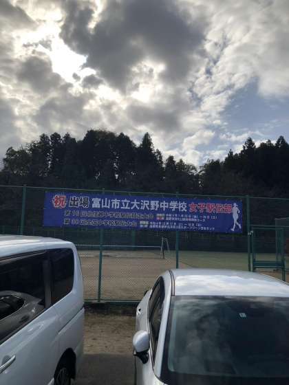 門出を祝してではありませんが、タイミングよく本日から、教育振興会からの横断幕がテニス場フェンスに掲げられました。