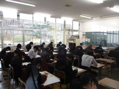 いよいよ期末考査が始まりました。頭を抱えながらも一生懸命考えています。努力した成果を出し切りましょう!