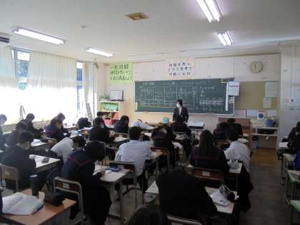 1年4組「音楽」では、『魔王』の鑑賞を行っています。 -