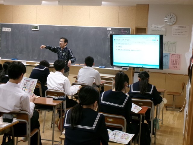 12月8日(月)各学年「授業のようす」 公開日 2025/12/08 更新日 2025/12/08 学校生活 1-1家庭科 消費者トラブルの実態を調べ、対策方法、解決方法を考えよう 2-1体育 バドミントン 3-1社会 企業は、経済活動をどのような目的で行い、役割を果たしているのか +5