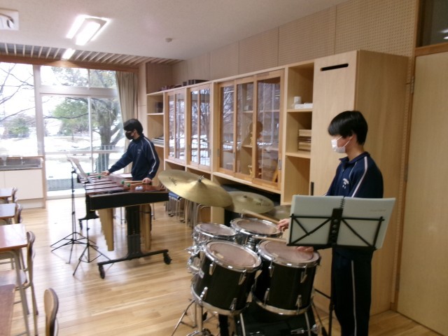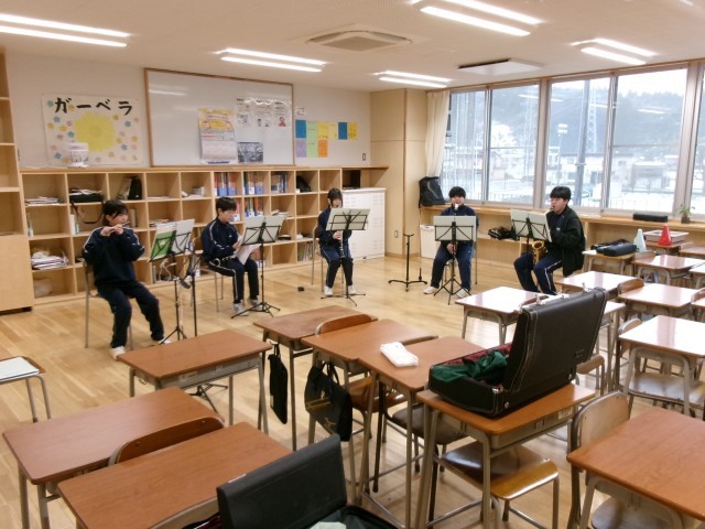 今日は吹奏楽部とソフトテニス部が活動しています。
