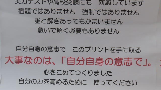3月3日(火)1年生「廊下の学習プリントのところに」 公開日 2026/03/03 更新日 2026/03/03 校長室から こんな掲示がありました。宿題だからやるのではなく、入試があるからやるのではなく、「なんだかおもしろそうだから」「力だめしに」自分の内側から出てくる気持ちのほうが、ずっと大事です。(どんなことでも)