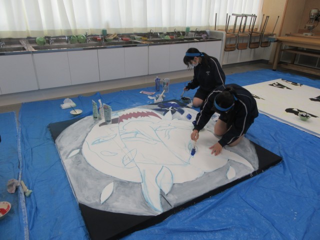 体育大会に向けたデコレーション係の活動の様子です。