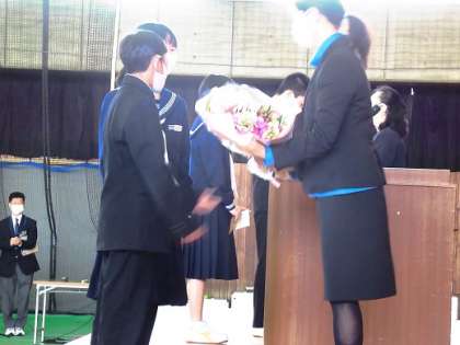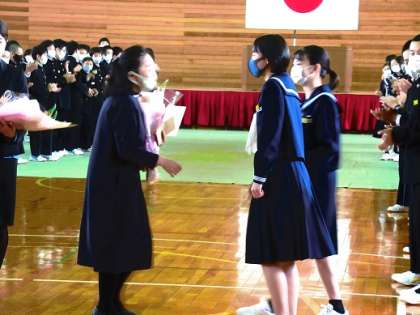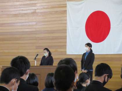 4月6日(火)「離任式」 公開日 2021/04/07 更新日 2021/04/07 学校生活 この春の異動でこの上滝中学校から転出される先生方の離任式を行いました。 離任される先生方からは、「自分を大切にしてほしい」「上滝中学校のよいところを受けついていってほしい」と在校生へのメッセージをいただきました。 転任される先生方、ありがとうございました。 新しい学校でもご活躍ください。